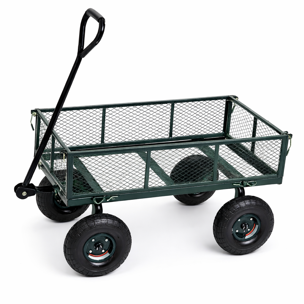 El carretón metálico multiusos es una herramienta robusta y versátil, diseñada para facilitar el transporte de carga en bodegas, jardines, fincas, talleres e industrias. Su estructura resistente y sus paredes abatibles permiten cargar y descargar con mayor facilidad, adaptándose a diferentes tipos de mercancía.