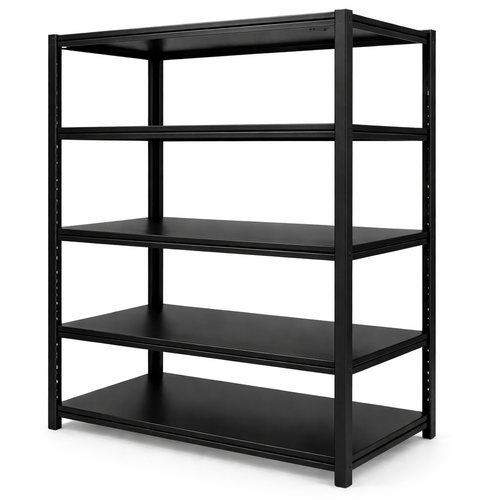 Estantería metálica de uso comercial, diseñada para ofrecer máxima resistencia, durabilidad y eficiencia en espacios de trabajo exigentes. Fabricada completamente en metal y acabada con pintura negra de alta resistencia, brinda un aspecto profesional y una excelente protección contra el desgaste, la humedad y la corrosión.
