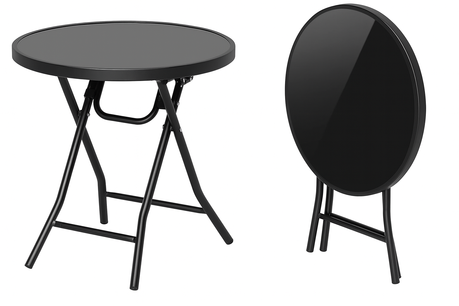 Mesa plegable 60 centímetros lista para usarse, no requiere armado. Diseño liviano y compacto, fácil de transportar y guardar. Se pliega y despliega rápidamente con seguros de seguridad. Vidrio templado para larga duracion.