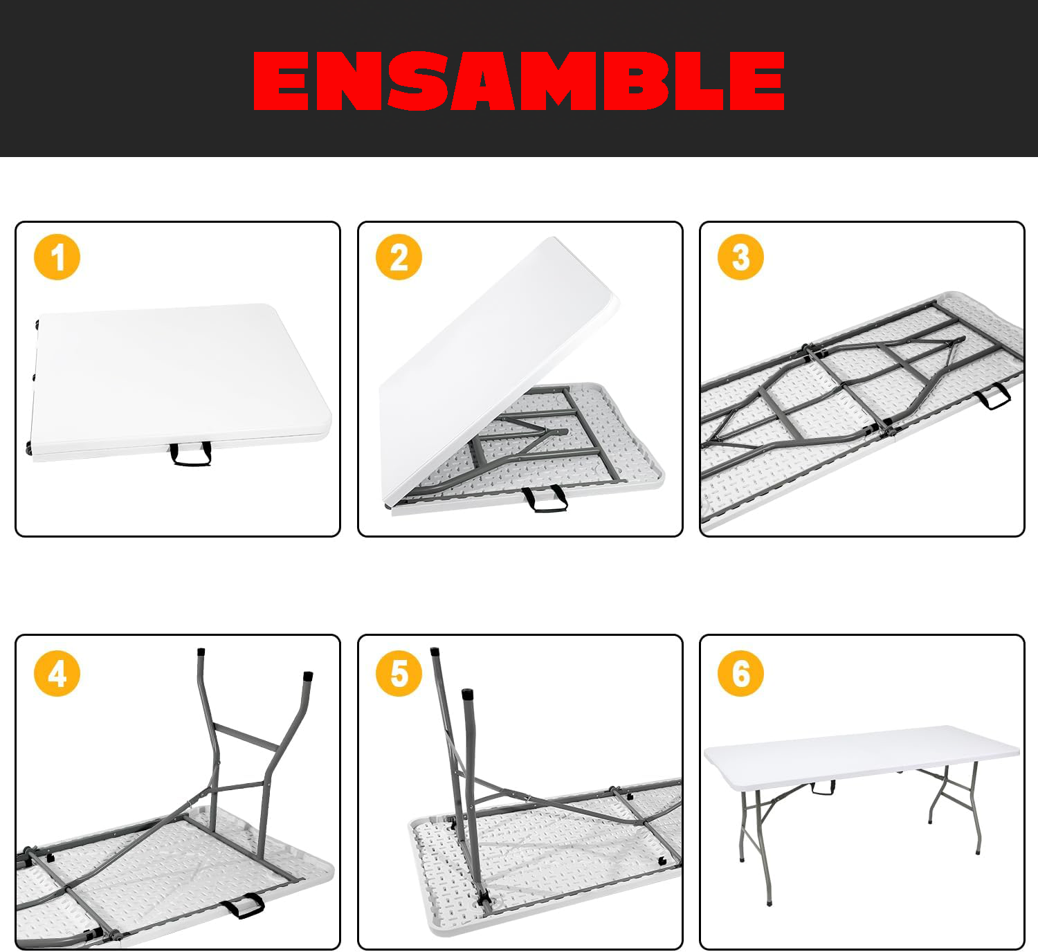 Mesa plegable blanca, reforzada, plegable plastica, marca AMERICAN DRAGON. medidas, 1.80m de largo, 74cm de ancho x 74 cm de altura, marca AMERICAN DRAGON®
