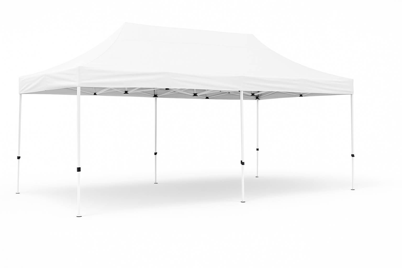 Toldo Plegable Comercial Estilo Acordeón tamaño 3 x 6 metros en color blanco.